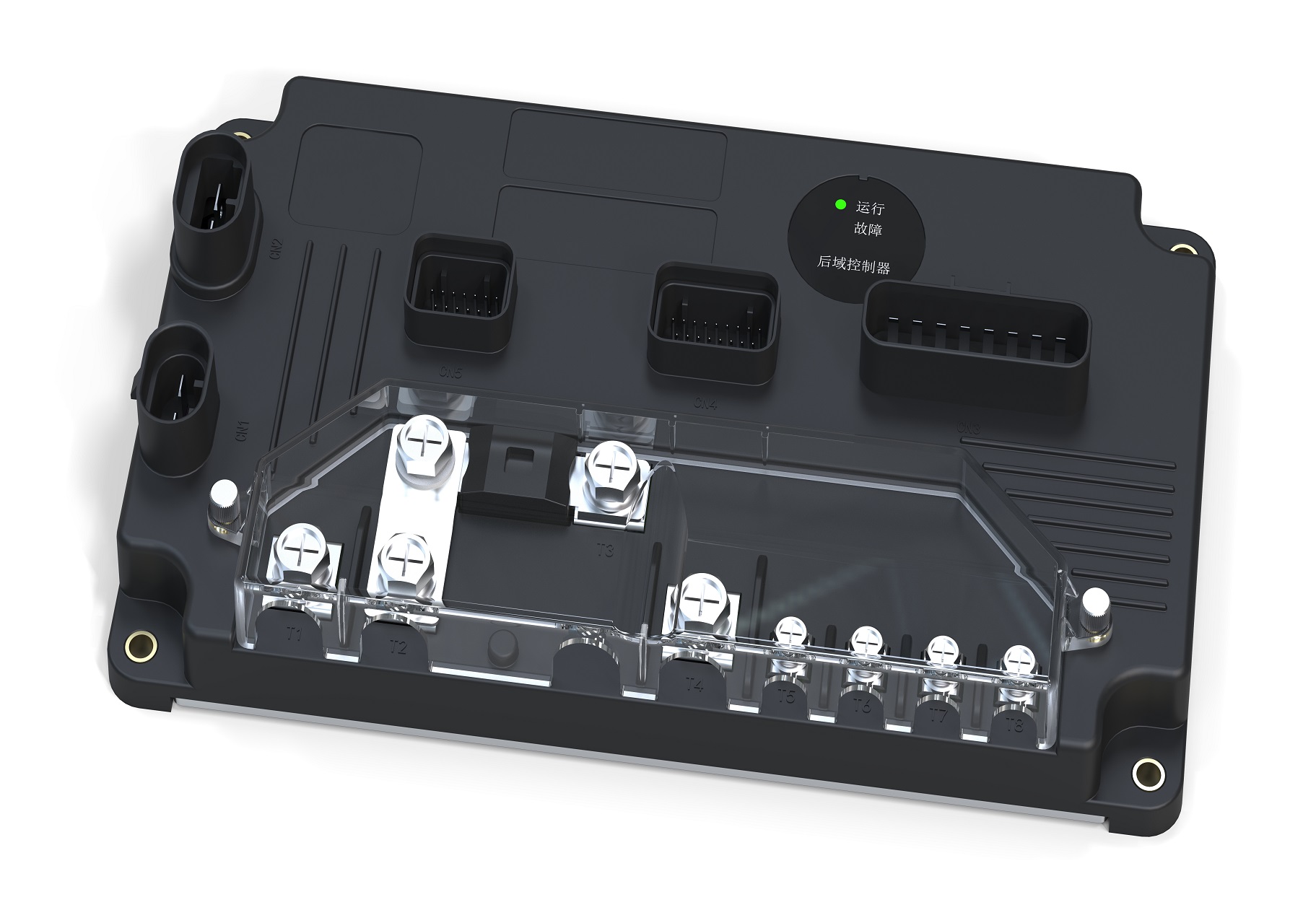 后域控制器是新能源客车CAN总线系统中的电源分配和控制部分,代替后低压配电盒和后模块。主要为其他汽车电子负载供电和实时电流监测,具备负载输出短路保护、负载过流配置及保护、启动保护的功能。通过 CAN 总线可实现模块内部参数配置、可将相关信息发给各个模块,实现负载状态的实时诊断。不同车型的软件可通过CAN总线在PC机上更新或配置,满足不同的需要。